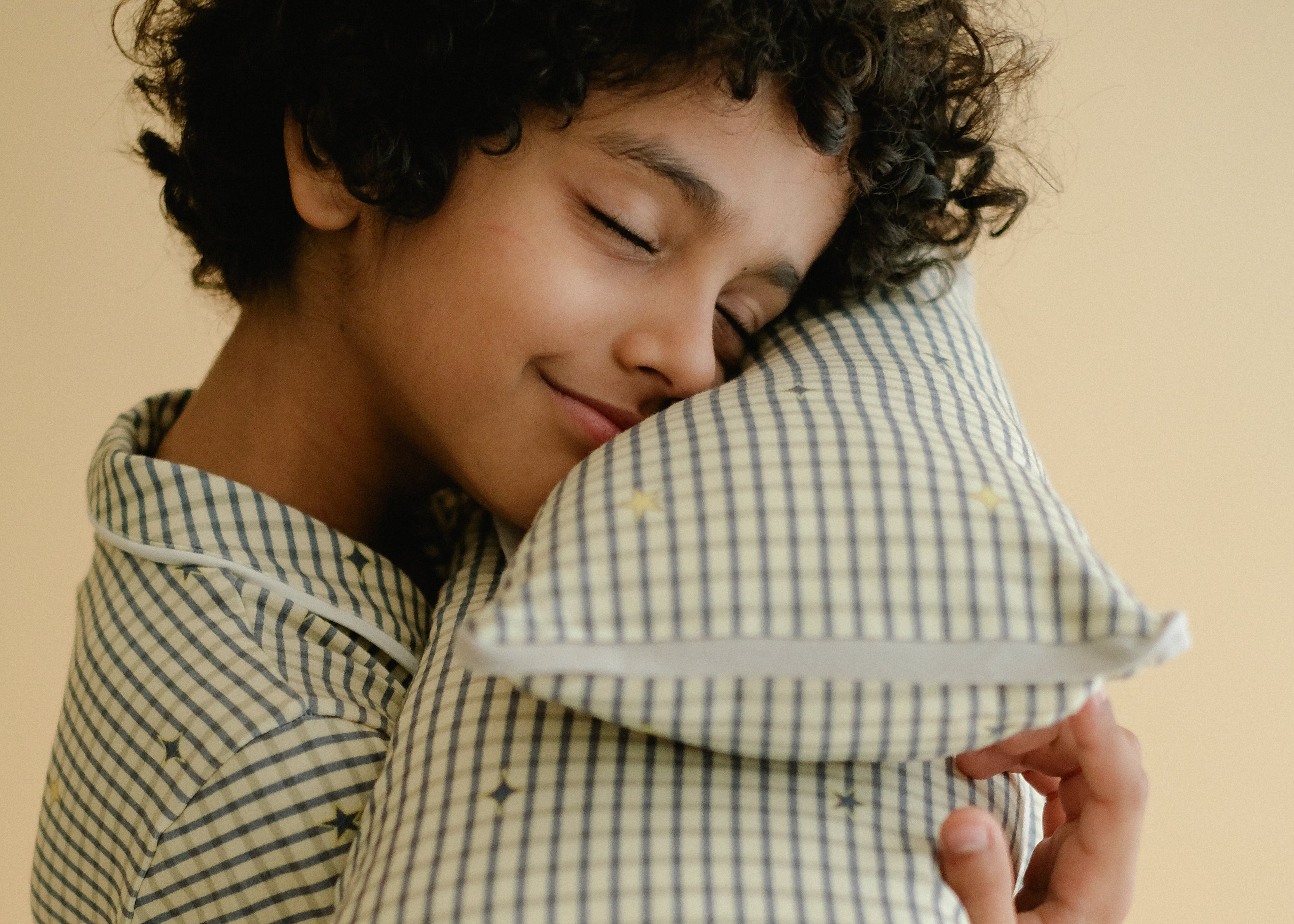 A gingham print in navy hue adorned with hand-drawn shells — like a net bag full of the collected treasures from the shore.